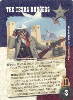 I try to play the game with two posses an in-town posse and an out of town posse. These can be mixed and matched according to how the game goes. In addition the Ranger's home ability allows you a lot of fluidity so you can usually respond fairly well to any need for reinforcements.