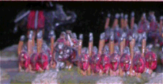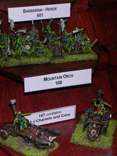 One thing was for sure, that there is a rapid growth in decent 10mm fantasy figures. Warmaster and Demonworld impress as ever, but it was the discovery of the new Kallistra range, "Hordes & Heroes" which gave the impression that 10mm is here to stay. Detailed enough to be collectible, small enough to have a convincing battle with..? Well we'll see eh? Oddly enough the frothers opted for 6mm instead, choosing from Irregular Armies' incredibly wide range (although Bacchus's new 6mm Samurai were tempting- for those who liked the idea in general). Could be a mistake, but then with an army for less than a tenner at least it won't be a particularly expensive one...