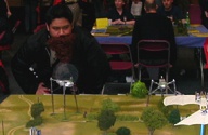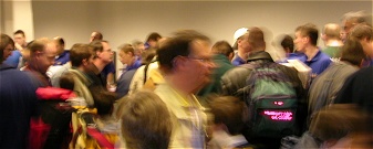 All were impressed with the upcoming figures for West Wind's "Dwarf Wars" game. Very, very cool miniatures that should get you started with proper units at release time, so none of the usual worries about "will the range stop after 3 figures" or indeed attempting to match figures from manufacturers of various ranges who don't cater for the wargamer out there. The other greatest discovery was probably that of Newbold Enterprises' new and upcoming figs. Newbold isn't an entirely new name to those in the higher echelons of the Colonel's army (those who are truly in the know). Yet as they have no web presence and only seem capable of marketing themselves in print with photographs so dreadful that make the figs look like playmobil they have yet to grace the pages of the Masterworks. Whether the figures are better than previous efforts or Newbold have always been producing this stuff and never telling anyone about it, we thought the figs worthy of a special note. The biggest dissappointment must be the absence of European manufacturers such as Crocodile and Alionas- even those who had attended last year like Excalibur Miniaturen. Did they do badly last year, or were they protesting over the Iraq war? Just before close of play those inveterate frothers UnclEvl and Colonel