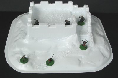 I must recommend you visit the site, not just for the free sample sets but also for the animations of the pieces in action... quite amazing! Upcoming projects include an expanded castle set with siege engines and ruined sections, and a 'Hovels and Homes' interiors set.