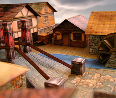 While we are looking at card buildings, you could go a long way towards wrong before recalling that Wizards have a great collection of card buildings to download for free at their D&D site. These are very nice quality and with plenty of generic pieces to really bulk out your layout and extras like windows and wood textures you can add individual touches to each. Your biggest problem (apart from replacing your printer ink) might well be that you end up with no room for the figures.