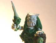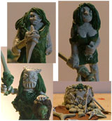 Sculptor's Notes: Queen Katerine has an advisor/wizard, Grimble, who holds aloft a magic mirror that can see anywhere in her land, especially with regard to her foes. The mirror as well as being a demonic slave, also functions as an ordinary mirror, so she can adjust armour etc. Just because she is going to war doesn't mean she doesn't want to look good!