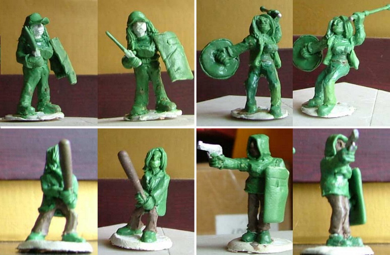 "The best features in these figures is the hair and the smooth surface of the one girl's bat. Otherwise its quite rough again. Lots of holes in the greens and very raw sculpt. Clothing folds are virtually non-existent, plus anatomy and general posing that fail to convince. Like the bugbusters set, this sculptor may have benefitted from spending more time on fewer figures"
