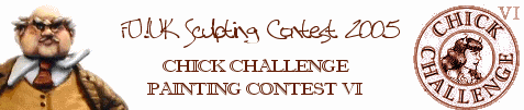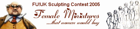 Female miniatures... that women would buy.The second edition of FU!UK's renowned annual sculpting contest has ended! Go see the entries in the galleries now! Fantasy Women - Non-human Females - Modern & Sci-Fi Women - Sets & Diorama's * * * As always, the aim of the contest is to receive submissions of original sculpts from you (the frother community), which will then be judged by a team of renowned frothers from different corners of the hobby. To celebrate the perpetuation of this FU!UK contest tradition, this year's contest will be organised in a partnership with the famous Chick Challenge painting contest. The winning sculpts will be sold in the webshoppe as part of the CCVI commemorative miniatures set. We are naturally hoping to see some of your painted FU!UK minitures make an apparition in the CCVI. You can send in your entries for the Sculpting Contest until August 14th 2005.