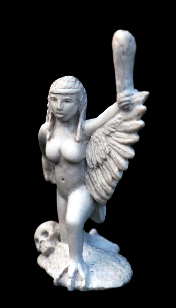 She is called Loon Woman or "She who becomes loon". She is based on the Native American stories of a jealous and vengeful woman who beat and burned her victims. It is 28 mm tall and made from magic sculpt epoxy resin.