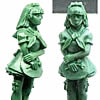 | Thanks to everyone who participated in the 2004 FU!UK International Pro-Am Sculpting Competition. Here are the pictures of the figures that did not win their categories, but were so great that we had to have a full second set of figures. What a response! These figures sold at £10 (and a ridiculous £20 for this set and the Winners Set), which even included postage to anywhere in the world, so I bet you're sick if you missed out. Under the terms of the competition we only owned the rights to these figs for a TWO MONTH PERIOD, so now we pass the right back to their respective sculptors. Some you may see in slightly modified form in their catalogues, others will probably never be seen again (except 'expertly' painted versions on e-bay for extortionate sums). This second set, after some confusion and kerfuffle, was made up as follows: From the workbench of the amazing Drew Williams, inspired by an original Tenniel illustration (thought to be a caricature of the author himself) this figure will be instantly recognisable to any fan of Lewis Carrol or connoisseur of British illustrators. "The White Knight Falling Off His Horse"... so good we changed the rules to let it in! By Shane "Tartan Spartan" Hoyle's very hand, a beautiful, anime style "early-bloomer" schoolgirl figure titled 'Alice'. A fantastic champion for any Alice in Wonderland themed army (er) or a fantastic display piece that is bound to be a talking point, Ming-Hua "minimaker" Kao's Captain of the Cards. Such movement an animation in one made of wax-coated cardboard, I think David Hasslehof could learn a thing or two here. And finally, and even though its not fair, a rediscovered Tartan Spartan sculpt, "The Queen", stern but regal and resplendent in her heart themed finery- a must for any coffee table or display cabinet. Click on the thumbnails below to get a good look at these fantastic figures...
